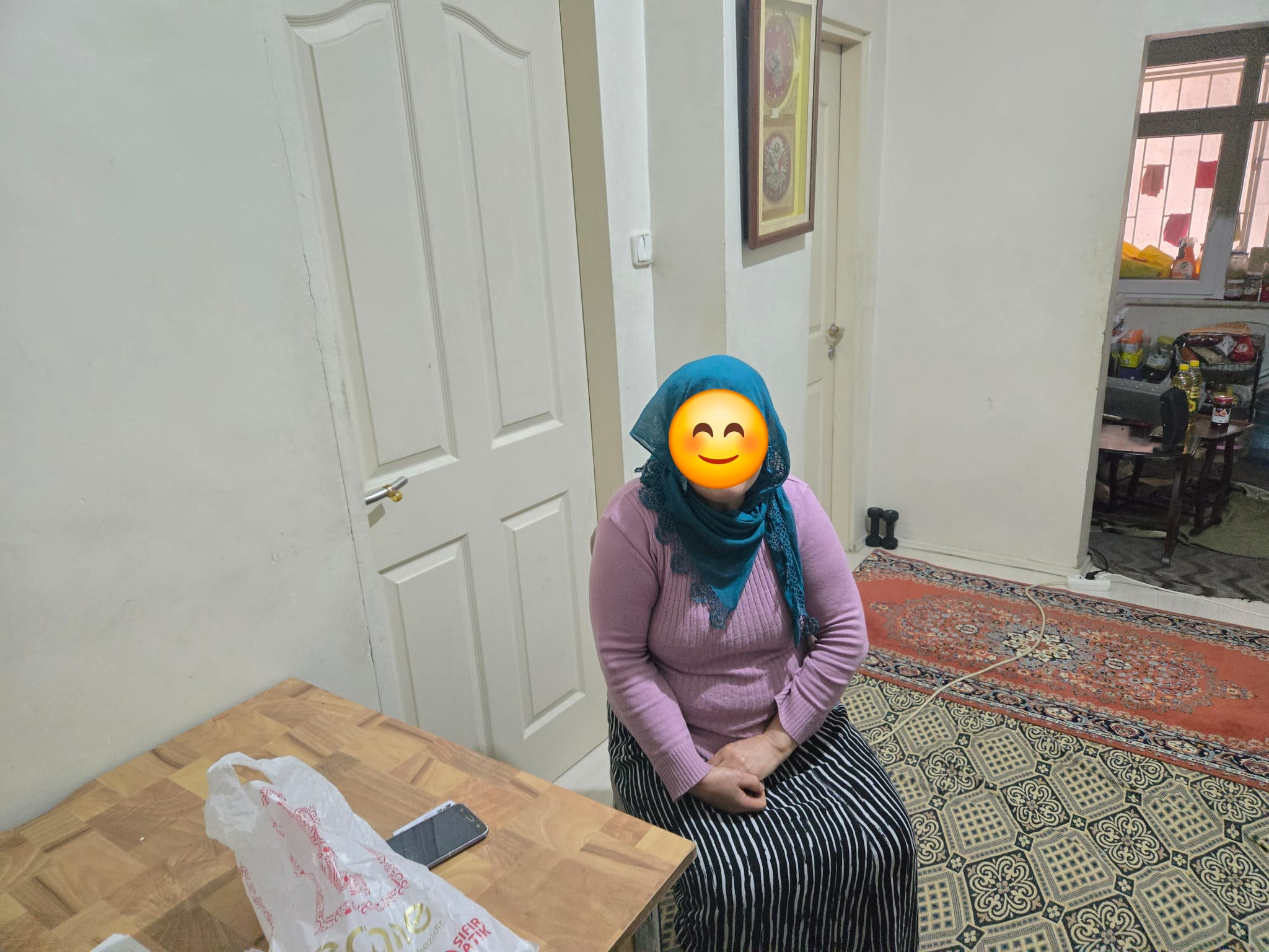 Suniye Hanım'ın eşi vefat etmiş. %20 raporlu, Hem şeker hastalığı, hem de boyun fıtığı var. Sağ kolunu kaldıramıyor. Bir çocuğu "şartlı eğitim ve şartı sağlık yardımı" alıyor. Diğer oğlu Azad Psikolojik rahatsız ve cezaevinde. 9000 TL dul aylığı ve 7200 TL ayrıca yardım alıyor. Kirası 15.000TL olmuş. Kendisinin geçinebilmesi için 12 ay boyunca yanında olmak istiyoruz.